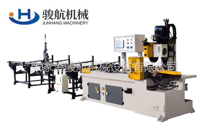 结构及动作说明:管件放置于机台上,自动夹紧,自动送料,自动切割,循环作业。
